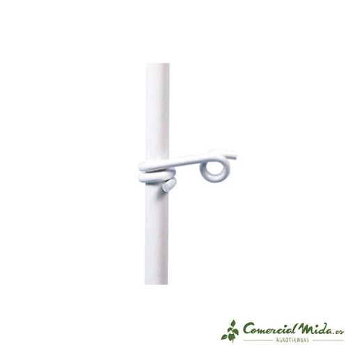 Aislador con forma de cola de cerdo para sujetar el hilo o el cable en postes de madera o de fibras de vidrio de hasta 12 mm de diámetro.