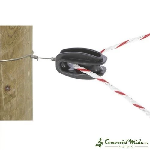 Dependiendo del modelo elegido, el mecanismo es diferente. Se puede enroscar directamente en la madera o insertar un alambre en el hueco que incluye para atar al poste directamente. Existen herramientas para adaptar cómodamente los aisladores. Estos modelos están destinados especialmente para colocar en las esquinas de las cercas.