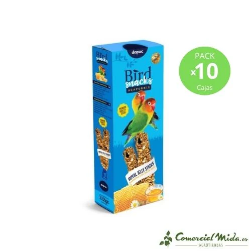 Barritas con jalea real diseñadas para servir como alimento complementario sano y energético para los agapornis y sus crías.