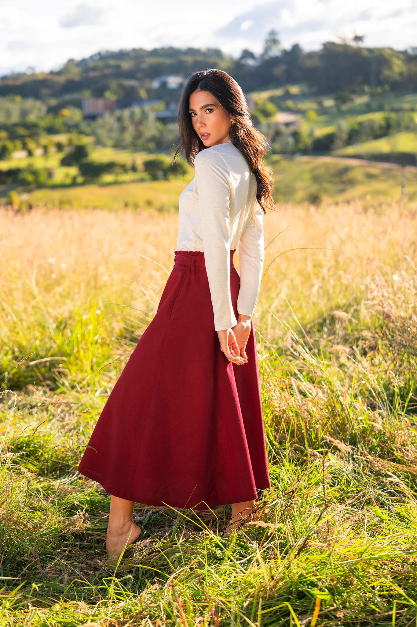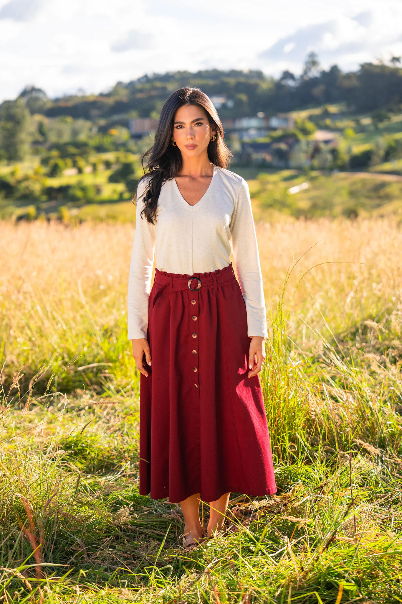 Buso manga larga, cuello en V, tela con textura,