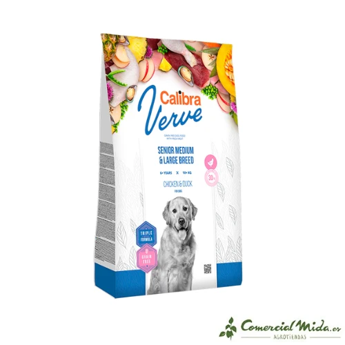 Pienso para Perros Senior Grandes Dog GF Verve con pato y pollo de Calibra.