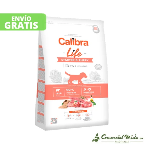 El pienso para cachorros Calibra Dog Life Starter es un alimento seco hipoalergénico para cachorros de 4 semanas a 3 meses. Su composición altamente digerible es ideal para los estómagos sensibles de los cachorros. También es apto para perros gestantes y lactantes.