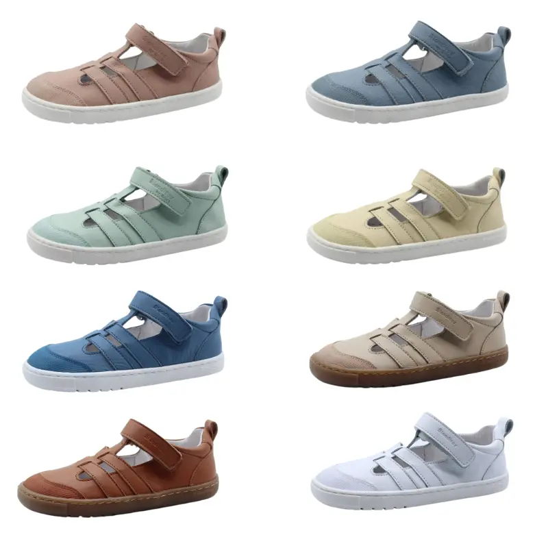 Este modelo también se puede catalogar como calzado barefoot abierto y están fabricados en CUERO en la parte superior y en la parte interior, el cierre está compuesto por UN VELCRO de largo recorrido que facilita la colocación y la autonomía de los más pequeños.