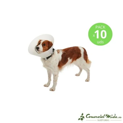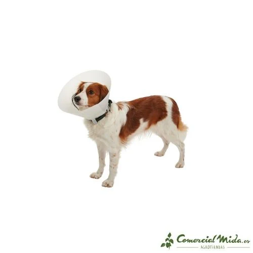 Collar de plástico opaco para impedir que el animal se autolesione tras algún tipo de tratamiento, cura o intervención quirúrgica.