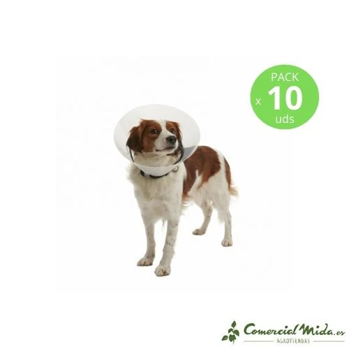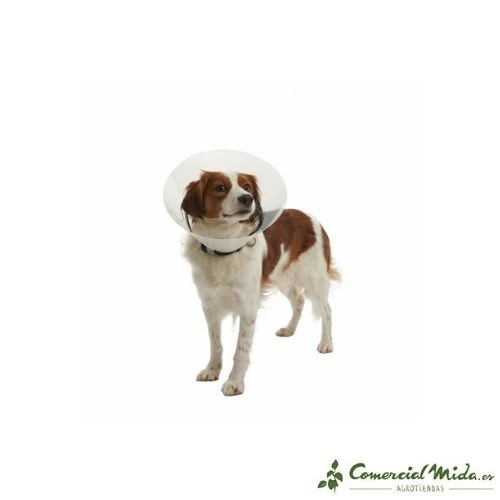 Collar isabelino transparente para evitar que el perro llegue a zonas determinadas del cuerpo que están lesionadas o con heridas. Disponible en diferentes tamaños y formatos.