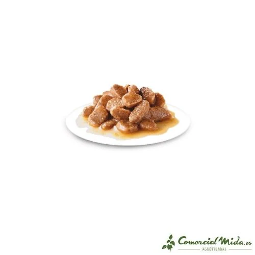 Alimento húmedo con trozos de carne en salsa es ideal para perros de razas pequeñas o «minis» desde los 10 meses hasta los 12 años.