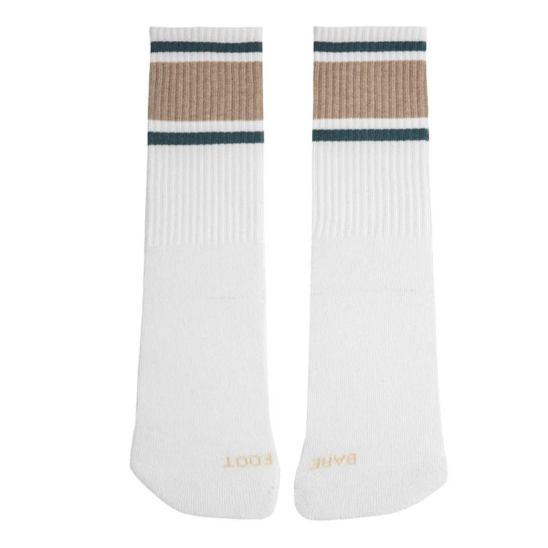 - TURRÓN (calcetines altos deportivos puño americano con rayas, base blanco y rayas marrón y verde). Ref: 1.027.601/2 Turrón