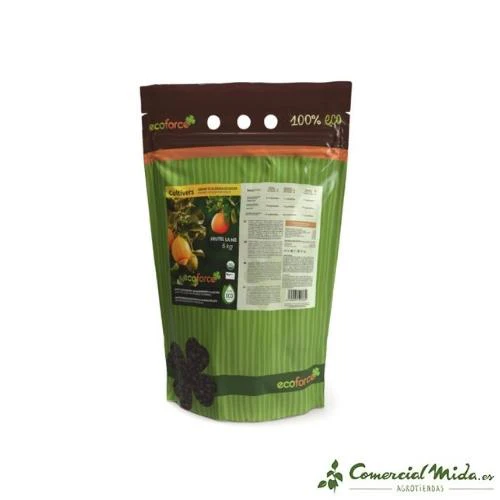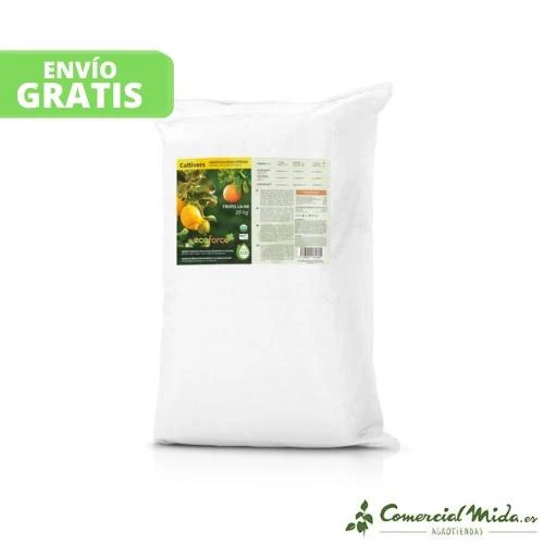 El abono ecológico de Cultivers para cítricos es un tipo de fertilizante 100% orgánico diseñado para mejorar el crecimiento y mantenimiento de estos árboles. Está formulado en pequeños gránulos en forma perlada de liberación lenta y controlada con un contenido equilibrado de elementos que potencian la nutrición de las plantas. Las pequeñas perlas son aptas para uso manual y mecanizado. Este abono estimula el crecimiento, refuerza y protege las raíces de enfermedades y plagas y aumenta el calibre del fruto, para aumentar el rendimiento de la cosecha. Su fórmula contiene una alta cantidad de materia orgánica, nitrógeno, potasio, ácidos húmicos y fúlvicos y elementos NPK esenciales. Se trata de un producto completamente ecológico, comprometido con la agricultura sostenible e inofensivo con los animales. Está libre de crear residuos y su calidad es máxima.