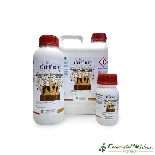 El nutriente líquido Cofre es una solución de Cobre Sistémico de Rápida Asimilación de Deygest para fortalecer tus plantas, favorecer su crecimiento y prevenir enfermedades. Su solución a base de cobre accede rápidamente a través de los vasos de savia de tu planta para llegar a cada uno de sus extremos. Además su molécula orgánica es gran precursor de la clorofila. potenciando la síntesis de clorofila activa y ganando ahorro energético.