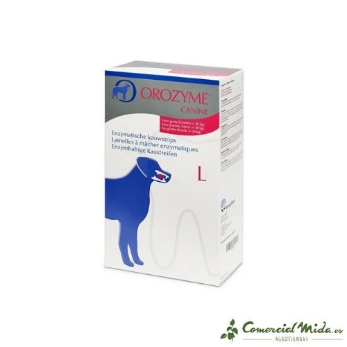 • 1 Caja de Tiras Dentífricas enzimáticas Orozyme para perros talla L (>30 Kg). EAN 8435458400751.