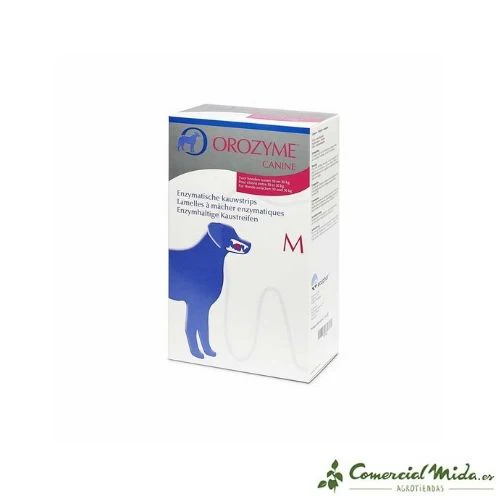 • 1 Caja de Tiras Dentífricas enzimáticas Orozyme para perros talla M (10-30 Kg). EAN 8435458400744.