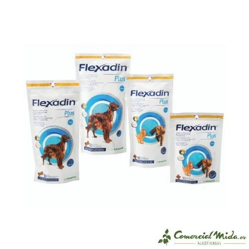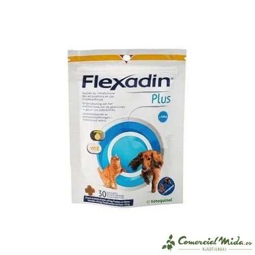 Suplemento nutricional con función regeneradora y de fortalecimiento de las articulaciones, indicado especialmente para perros y gatos con artrosis o problemas de desgaste de huesos. Contiene glucosamina y condroitín sulfato, componentes muy beneficiosos para el mantenimiento del cartílago y para reforzar el movimiento de las articulaciones. Además, está compuesto por ácidos grasos Omega 3 que ayudan a la regeneración y al mantenimiento de la salud articular. La Vitamina E es importante ya que aporta los antioxidantes que necesita el organismo. Flexadin Plus se presenta en comprimidos fácilmente palatables y adaptados al tamaño del perro. Hay diferentes formatos disponibles para gatos, perros pequeños, medianos y grandes.