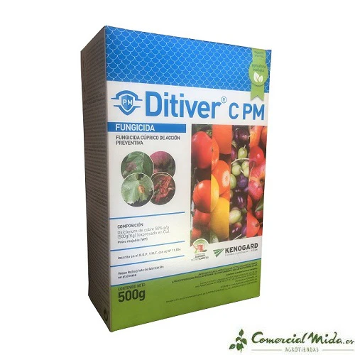 Ditiver C Azul es un fungicida preventivo que actúa por contacto, a base de oxicloruro de cobre al 50% efectivo frente a numerosas enfermedades (Mildiu, Alternaria, Antracnosis, Roya, Repilo, Cercospora, Cribado, Abolladura, Monilia y Moteado entre otras) en un amplio abanico de cultivos. Presenta también actividad contra infecciones causadas por bacterias.