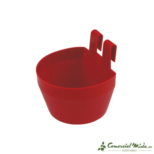 Este comedero puede ser usado también a modo de bebedero. Cuenta con unos ganchos para anclarlo cómodamente a los barrotes horizontales de nuestra jaula o reja de gallinero.