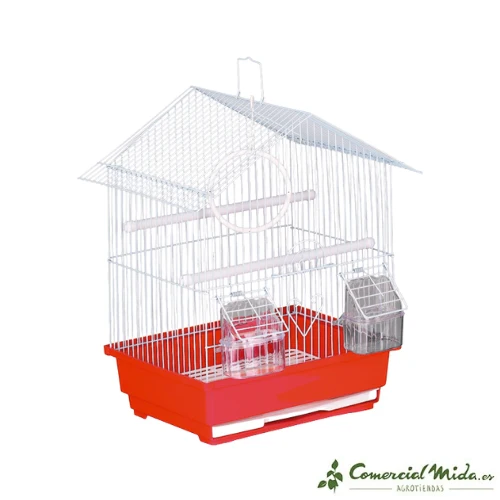 Esta jaula incluye dos comederos transparentes y perchas para que los pájaros se posen. Cuenta con una bandeja inferior extraíble para limpiar las deposiciones de nuestros pájaros. Cuenta con un tejado a dos aguas que le da un aspecto característico.