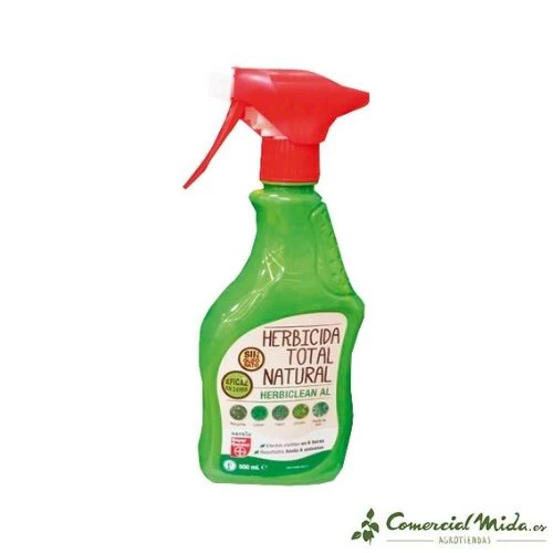 (*) Por motivos ajenos a Comercial Mida, el producto puede servirse en cualquiera de las dos presentaciones hasta agotar existencias: bote verde Herbiclean AL de Bayer o bote marrón como Herbicida Total Natural AL de Solabiol (SBM).