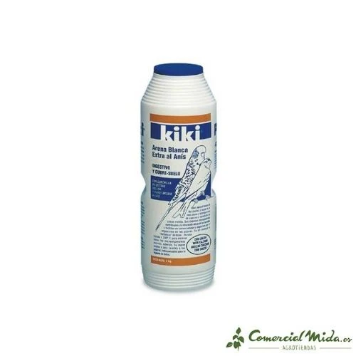 La Arena Blanca Anís para aves de Kiki es una arena indicada para jaulas de pájaros. Tiene doble función, lecho higiénico dentro del hogar de nuestra ave y complemento alimenticio. Esta arena digestiva está aromatizada con anís y es ideal para agapornis, ninfas, canarios y periquitos australianos. Está disponible en formato de 2 Kg y de 5 Kg.