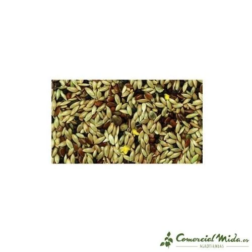 Alpiste, cañamones, linaza, nabina negra, negrillo y gránulos vitaminados.