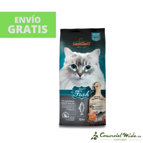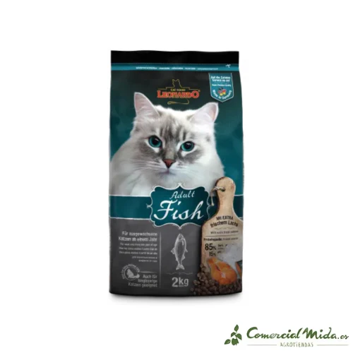 LEONARDO Adult Fish es la elección perfecta para proporcionar a tu gato una dieta equilibrada y sabrosa, especialmente si es amante del pescado y necesita una atención especial debido a intolerancias alimentarias o problemas digestivos..