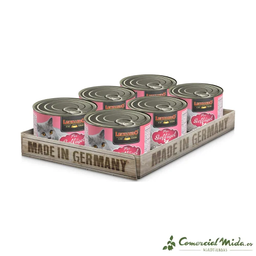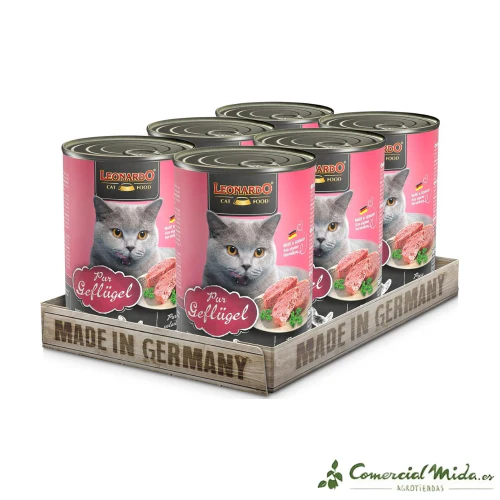 LEONARDO Puro en Ave es una dieta especialmente formulada para satisfacer las necesidades nutricionales de los gatos adultos. Este alimento se prepara con carne fresca de alta calidad y se cocina cuidadosamente en bolsas individuales para mantener su frescura y sabor. Solo se prepara con ingredientes seleccionados de la mejor calidad a base de carne fresca y con ingredientes sujetos a la estricta normativa alemana de alimentación animal.