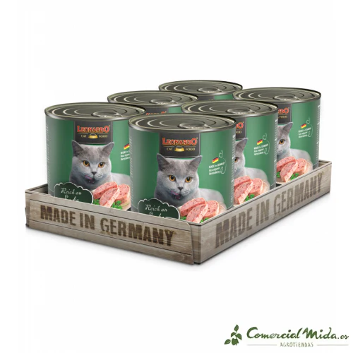 LEONARDO Rico en Pato es la elección perfecta para proporcionar a tu gato adulto una alimentación completa y equilibrada, rica en nutrientes esenciales y con un sabor que disfrutará. La calidad de los ingredientes y la cuidadosa preparación garantizan una excelente nutrición para la salud y el bienestar de tu gato.