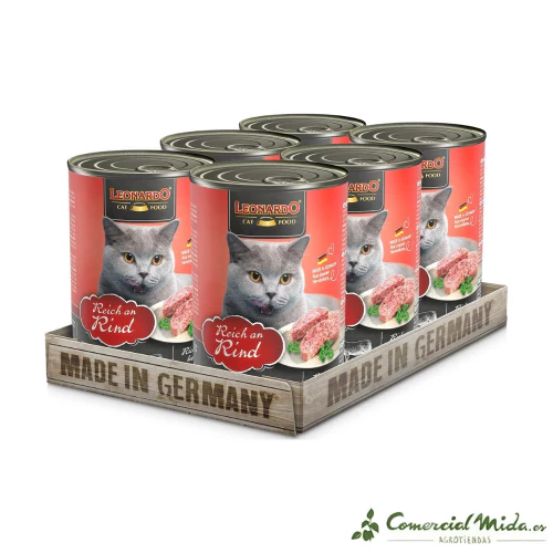 LEONARDO Rico en Ternera es la elección ideal para proporcionar a tu gato adulto una alimentación completa y equilibrada, rica en nutrientes esenciales y con un sabor que disfrutará. La calidad de los ingredientes y la cuidadosa preparación garantizan una excelente nutrición para la salud y el bienestar de tu gato.