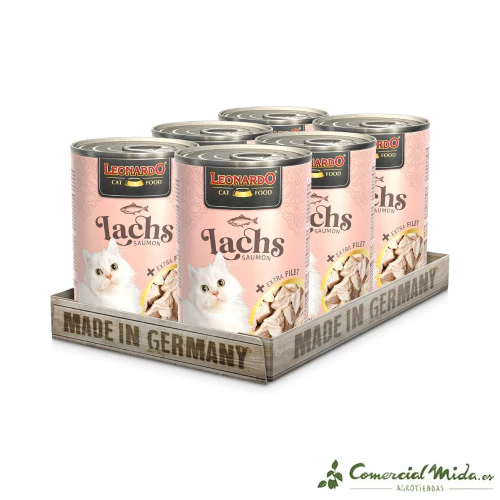 LEONARDO Salmón + Extra Filete es la elección perfecta para proporcionar a tu gato una comida nutritiva, sabrosa y beneficiosa para su pelaje, asegurando que disfrute de una experiencia de masticación única y deliciosa.