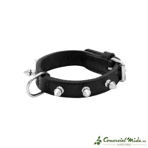 Su diseño clásico en piel de color negro con tachuelas es uno de los collares más utilizados por los dueños. Este collar viene con distintas dimensiones para ajustarse a diferentes tamaños del cuello de perro.
