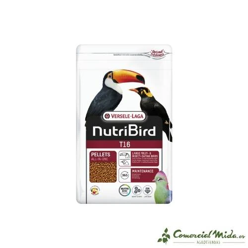 La mezcla NutriBird T16 para aves frugívoras e insectívoras de Versele-Laga le aportará a tu mascota un alimento diario de primera calidad. Esta mixtura con formato de pellets extruidos cuenta con la aprobación científica de nutrición completa, evitando la alimentación selectiva de manera deliciosa. Sus frutas refuerzan la flora intestinal y protegen a tu mascota de problemas intestinales. Las aves frugívoras e insectívoras son especialmente propensas a la hemacromatosis o acumulación de hierro, por lo que NutriBird T16 tiene un contenido de hierro bajo.