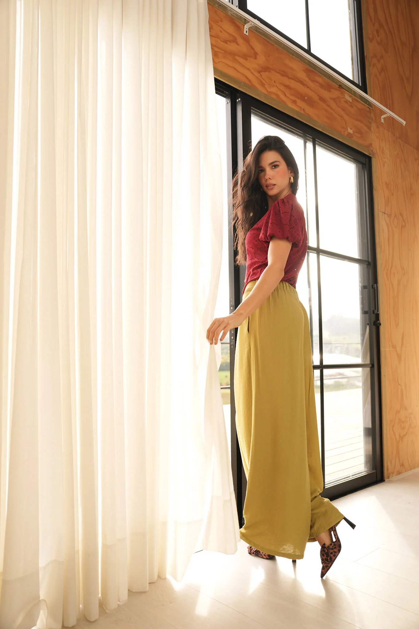 Pantalón bota palazzo, elástico en cintura, con bolsillos