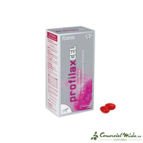 El suplemento alimentario Profilaxcel es un tratamiento para perros y gatos formulado a base de ácidos grasos que se emplea para a la prevención de enfermedades hormono-dependientes y para la recuperación de tejidos dañados en perros y gatos. La acción de este complemento alimentario, creado por la marca Pharmadiet (o Farmadiet) se centra en promover el buen funcionamiento de los tejidos de las mamas y la próstata y contribuye tanto a la prevención de enfermedades como el cáncer en perros y gatos como a la recuperación de la salud de tu mascota tras la escisión de tumores. La fórmula del tratamiento de Pharmadiet Profilaxcel incluye ácidos grasos esenciales (Omega 3, Omega 5, Omega 6 y Omega 9) que contribuyen al buen funcionamiento de los tejidos celulares de tu mascota. La acción de Profilaxcel se centra específicamente en estos órganos, mamas y próstata, porque son 2 de los tejidos que, al igual que en los humanos, presentan una mayor propensión a la aparición de tumores.