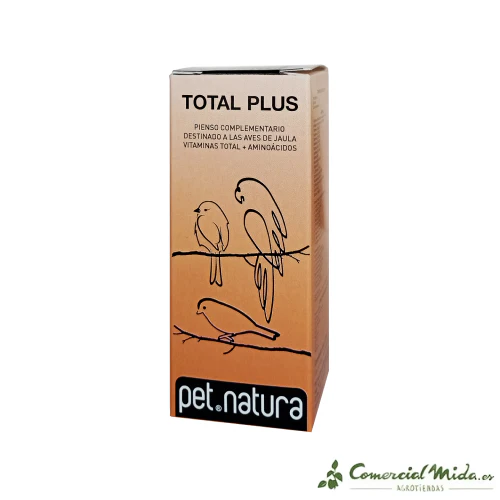 El complemento alimenticio Total Plus de Petnatura es un pienso complementario que ha sido diseñado para aves de jaula. Supone una administración extra de vitaminas y aminoácidos para los pájaros. Está desarrollado para administrar en la fase de desarrollo y crecimiento, tras la convalecencia de procesos infecciosos, en periodos de muda, así como también en estados carenciales y épocas de mayor desgaste como la reproducción.