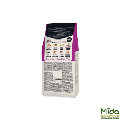 - Incluye cereales y arroz integral que mejoran la digestibilidad y los movimientos intestinales.