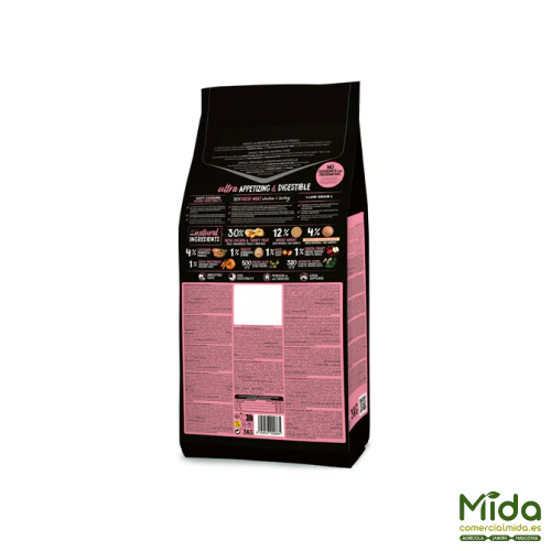 Control de peso: grasa moderada (15%) y fibra elevada (4%) para favorecer saciedad y control calórico.