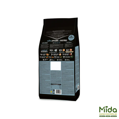 Control del peso: grasa moderada (12%) y fibra alta (4,5%) con efecto saciante.