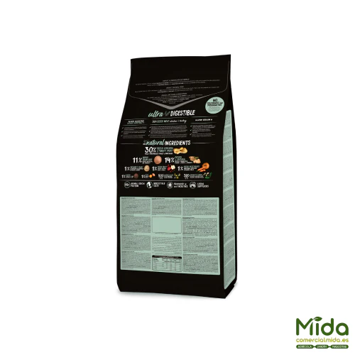 El pienso Ultra Mini Junior de Ownat es un tipo de alimento seco que facilita y mejora la digestibilidad en cachorros de razas pequeñas que tienen un proceso de desarrollo rápido e intenso. La fórmula está diseñada a base de ingredientes completamente naturales, con altas proporciones de carnes frescas y un contenido limitado de cereales integrales que mejorarán la asimilación de los componentes y facilitando el proceso digestivo. Este pienso cuenta con altos niveles de energía para satisfacer las necesidades nutritivas de los cachorros hasta la edad adulta. Es ideal para madres gestantes y favorece el destete de los cachorrillos. Los ingredientes son cocidos muy lentamente a baja temperatura para conseguir la máxima calidad nutricional. Incorpora fruta y verdura frescas que actúan como potente antioxidante natural y semillas de lino para el cuidado del pelo y la piel, aportando Omega 3 y 6. Refuerza el desarrollo de los huesos, músculos y articulaciones y protege las funciones del sistema inmunitario.