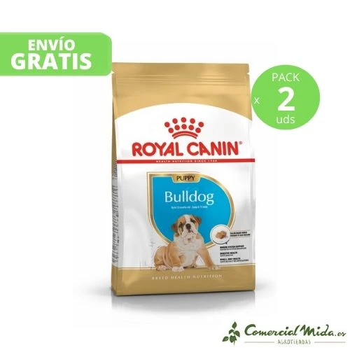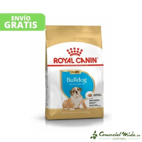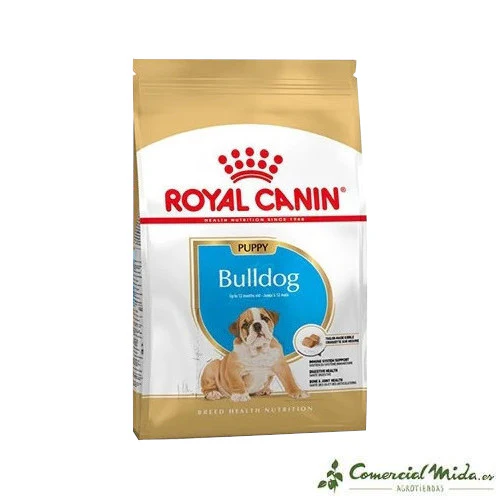 El alimento seco Bulldog Puppy de Royal Canin es un pienso completo para administrar a perros, específicamente a cachorros de raza Bulldog menores de 12 meses de edad. La administración de este alimento contribuirá a que la salud digestiva sea óptima favoreciendo el equilibrio de la flora intestinal, además, ayuda a que la salud articular y ósea del animal sean favorables gracias a su contenido adaptado de fósforo y calcio. Su consumo facilita que el cachorro se mantenga en su peso ideal.