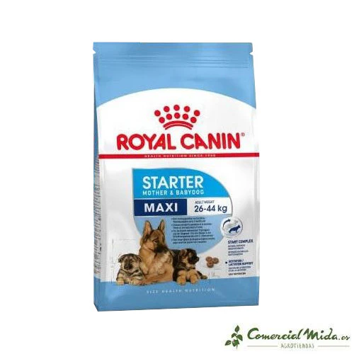 Pienso con una solución nutricional única que satisface las necesidades de la madre y sus cachorros en cinco etapas del ciclo de la vida: gestación, nacimiento, lactancia, destete y crecimiento hasta los 2 meses de edad. ROYAL CANIN MAXI STARTER está pensado para perros de tamaño grande de entre 26 y 44Kg hasta los 2 meses de edad y sus madres.