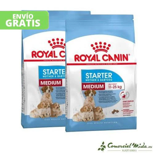 Royal Canin Medium Starter es un pienso seco para madres de raza mediana (medium) en el último tercio de la gestación y durante la lactancia y para cachorros de raza mediana durante el destete y hasta los 2 meses de edad.