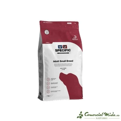 Specific Adult Small Breed CXD-S de Dechra es un pienso para perros adultos de raza pequeña (menos de 10 kg). La ingesta de este alimento supondrá una aportación de nutrientes suficiente para garantizar una buena salud de los animales de estas razas. Está elaborado con ingredientes de gran calidad que proporcionan proteínas, vitaminas y minerales. Este alimento supone una dieta completa, sana y equilibrada para el animal que tenga entre 1 año y 8 de edad. Además, la croqueta es de tamaño pequeño adaptado a la mandíbula de la mascota. Su formulación favorece un estado de salud óptimo libre de estados carenciales también contribuye a que el pelo y la piel se mantengan sanos y brillantes y que los dientes y huesos permanezcan fuertes.