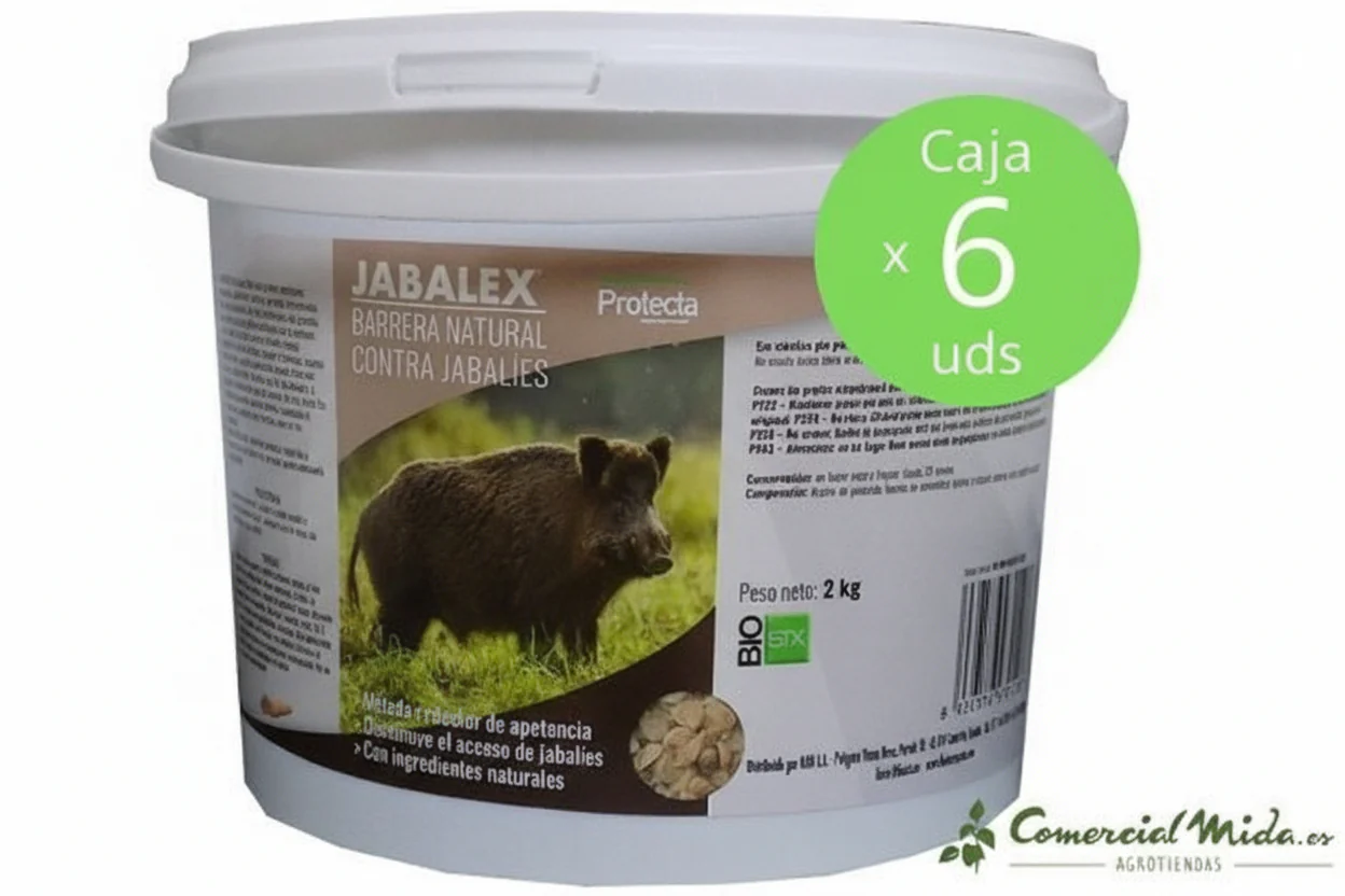 El modificador de conducta Jabalex actúa como repelente para jabalíes y los mantiene alejados de jardines, parcelas, cultivos, huertos, etc. Este método de control para jabalí es efectivo y protege zonas de campo, jardín, huertos y más. Jabalex se presenta en forma de pequeñas croquetas súper apetentes para jabalíes y cunde mucho ya que con 1 kg de producto podrás proteger hasta 1 hectárea de terreno.