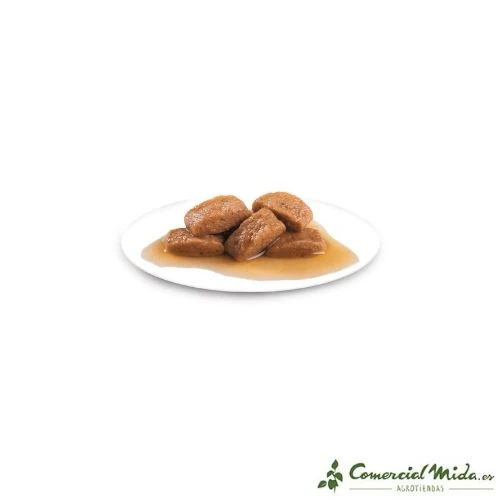 Estos exquisitos trozos de carne en salsa dan un gran resultado en la alimentación de nuestros amigos senior peludos. Textura y sabor irresistibles adaptados al nivel de actividad de los perros mayores y a sus dentaduras débiles. Estos trocitos de carne en salsa Royal Canin Maxi Ageing 8+ Wet aportarán los nutrientes necesarios para la actividad diaria de los perros senior de tamaño grande entre 26 y 44 kg. Un jugoso alimento para perros maxi con carne, cereales y proteínas vegetales para cubrir todas sus necesidades nutricionales.