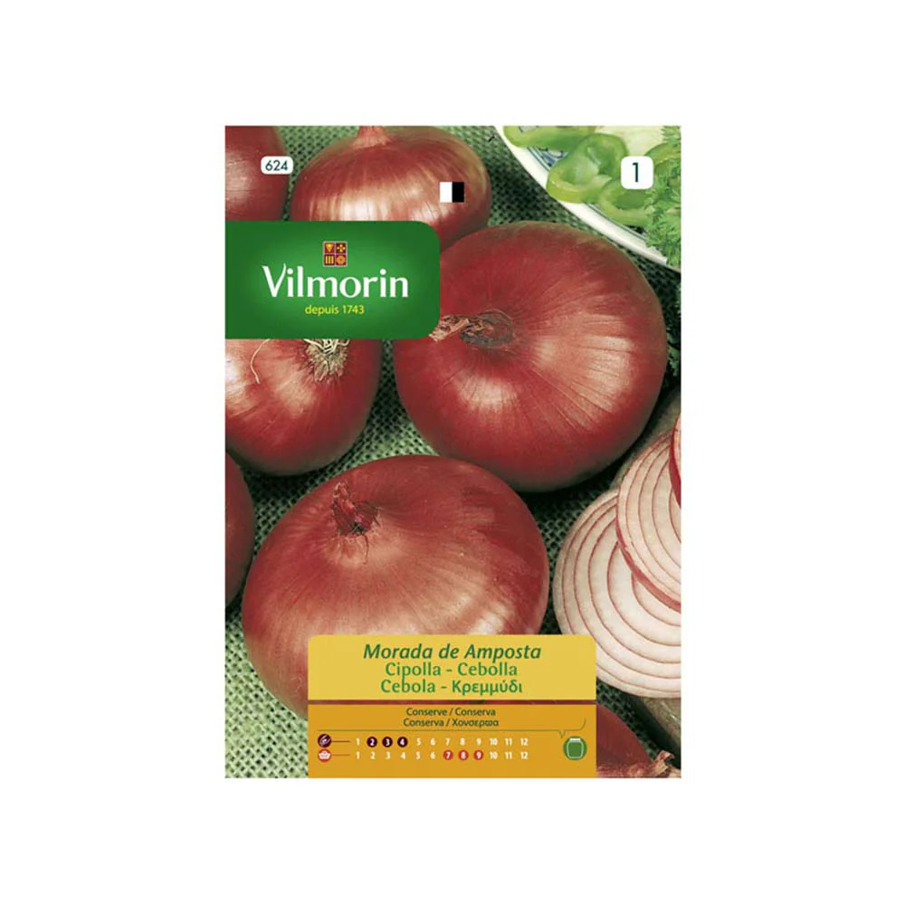 Las simientes de Vilmorin son semillas de cultivo fácil. La cebolla morada de Amposta es una variedad típica de zonas con clima de invierno suave. Este tipo de cebolla es de buena preservación y es dura y resistente. Los bulbos son grandes, con forma de globo un poco apuntados hacia y el cuello y con piel externa de color rojo y carne morada. De sabor suave. Su cultivo requiere de poco espacio y se adapta fácilmente al ambiente. Es muy resistente al frío y el riego deberá ser regular y moderado. Prefiere suelos sueltos, sanos, profundos, ricos en materia orgánica y soleados. Para cultivar bulbos grandes se necesita un terreno bien fertilizado y drenado.