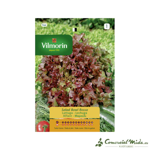 La Lechuga Red Salad Bowl, es una variedad con gran prestigio, de hojas sueltas y corte profundo. Es una lechuga grande y de crecimiento rápido con suculentas hojas largas de color rojo-bronce y toques verdes. Son crujientes y muy tiernas, con un sabor dulce. Esta es una variedad ideal para macetas. Crece hasta los 15 cm con una amplitud de 25 cm.