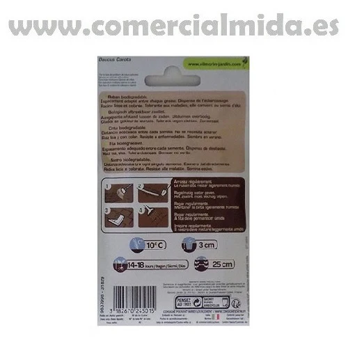 Vilmorin les ofrece sus semillas de zanahoria maestro en cinta biodegradable, ideal para huertos urbanos y espacios reducidos así como para personas que no tengan experiencia previa en el cultivo de semillas. Posee una distancia adecuada entre semillas y no se necesita aclarar. Asegúrese de obtener una buena cosecha sin esfuerzo y con un alto rendimiento.