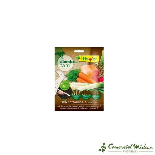 Las semillas Flower de hortalizas se presentan en formato de siembra fácil con cuatro variedades diferentes, ideales para montar un huerto en casa. Este siembra fácil incluye semillas de cebolla amarilla, puerro, zanahoria y rabanito. Su aplicación es sencilla: las semillas vienen integradas en una tira que se debe colocar en el lugar donde se vaya a asentar el cultivo, para cubrirlas con la cantidad necesaria de substrato para su buen crecimiento, germinación y posterior riego habitual. Cada una de las tiras tiene un 1 metro de distancia y las semillas están colocadas a la distancia para su siembra directa y óptima.