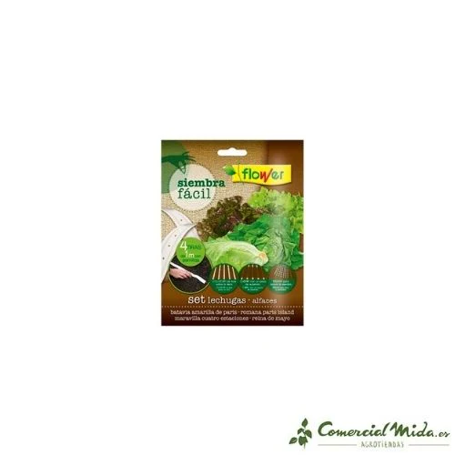 Las semillas Flower de lechugas se presentan en formato de siembra fácil en tiras de papel biodegradable con cuatro variedades diferentes incrustadas, ideales para montar un huerto en casa. Este siembra fácil incluye semillas de lechuga Batavia amarilla de París, romana París Island, maravilla cuatro estaciones y reina de mayo. Su aplicación es sencilla: las semillas vienen integradas en una tira que se debe colocar en el lugar donde se vaya a asentar el cultivo, para cubrirlas con la cantidad necesaria de substrato para su buen crecimiento, germinación y posterior riego habitual. Cada una de las tiras tiene un 1 metro de distancia y las semillas están colocadas a la distancia para su siembra directa y óptima.