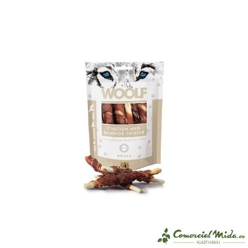 Los Rollitos Masticables con Polllo de Woolf son unos snacks de origen natural indicados para su administración a perros. Han sido formulados específicamente con un 57% de pollo, una carne rica en proteínas, minerales y vitaminas que se caracteriza por ser baja en grasas y poco calórica, por lo que es ideal para evitar el aumento de peso en el animal impidiendo así diferentes enfermedades y problemas de salud derivadas del sobrepeso. Además, también ayuda a reforzar el sistema visual de la mascota gracias a la Vitamina A mientras que la Vitamina B asegura elasticidad a la piel y un refuerzo extra al sistema inmunológico. Su administración es muy sencilla gracias a su sabor que resulta delicioso para el animal.