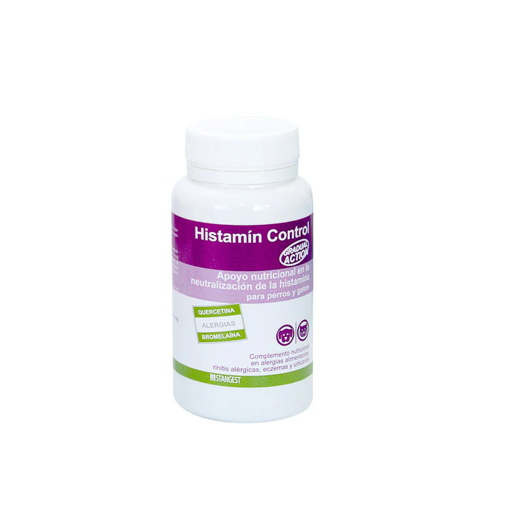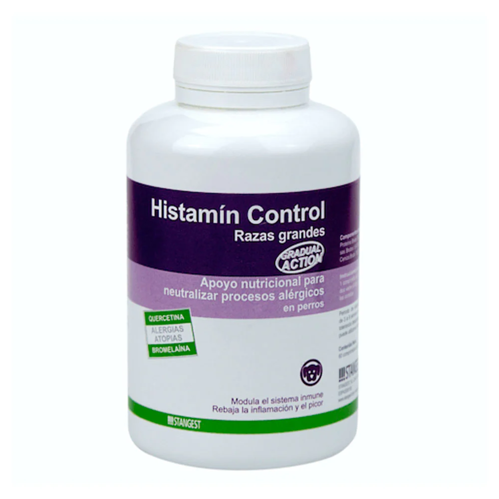 El Histamin Control de Stangest es un suplemento alimenticio para perros y gatos para la reducción de la intolerancia a ingredientes y nutrientes. Sus ingredientes ayudan a obtener un buen funcionamiento del sistema inmunológico. Puede usarse como alternativa natural para neutralizar la histamina en los procesos alérgicos de tu mascota.
