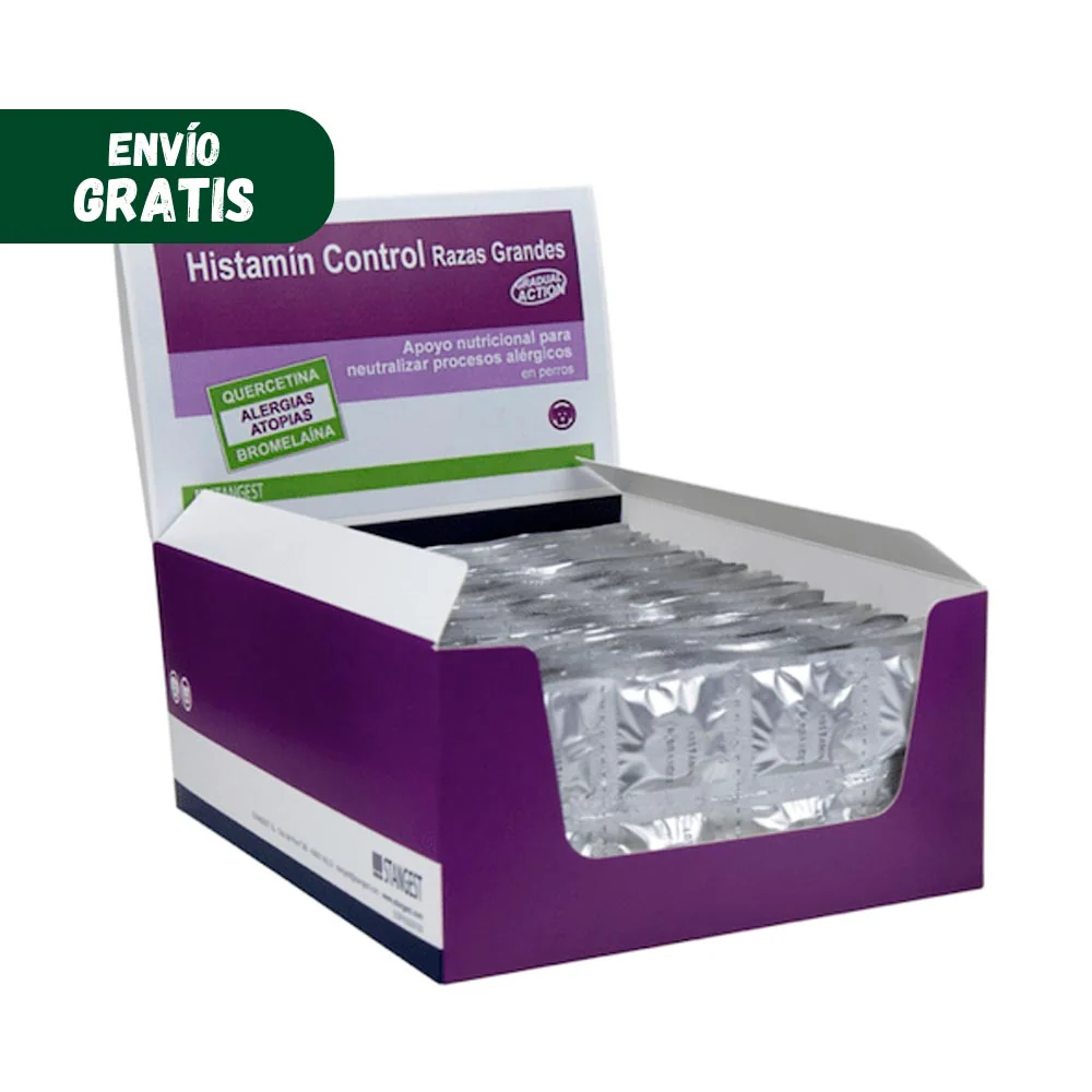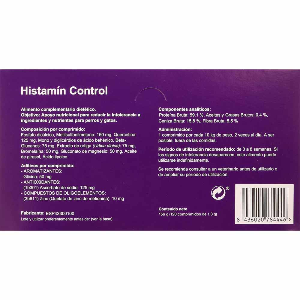 - Histamín Control Razas Grandes: 1 comprimido de 3 g por cada 25 kg de peso, 2 veces al día. A ser posible, fuera de las comidas.